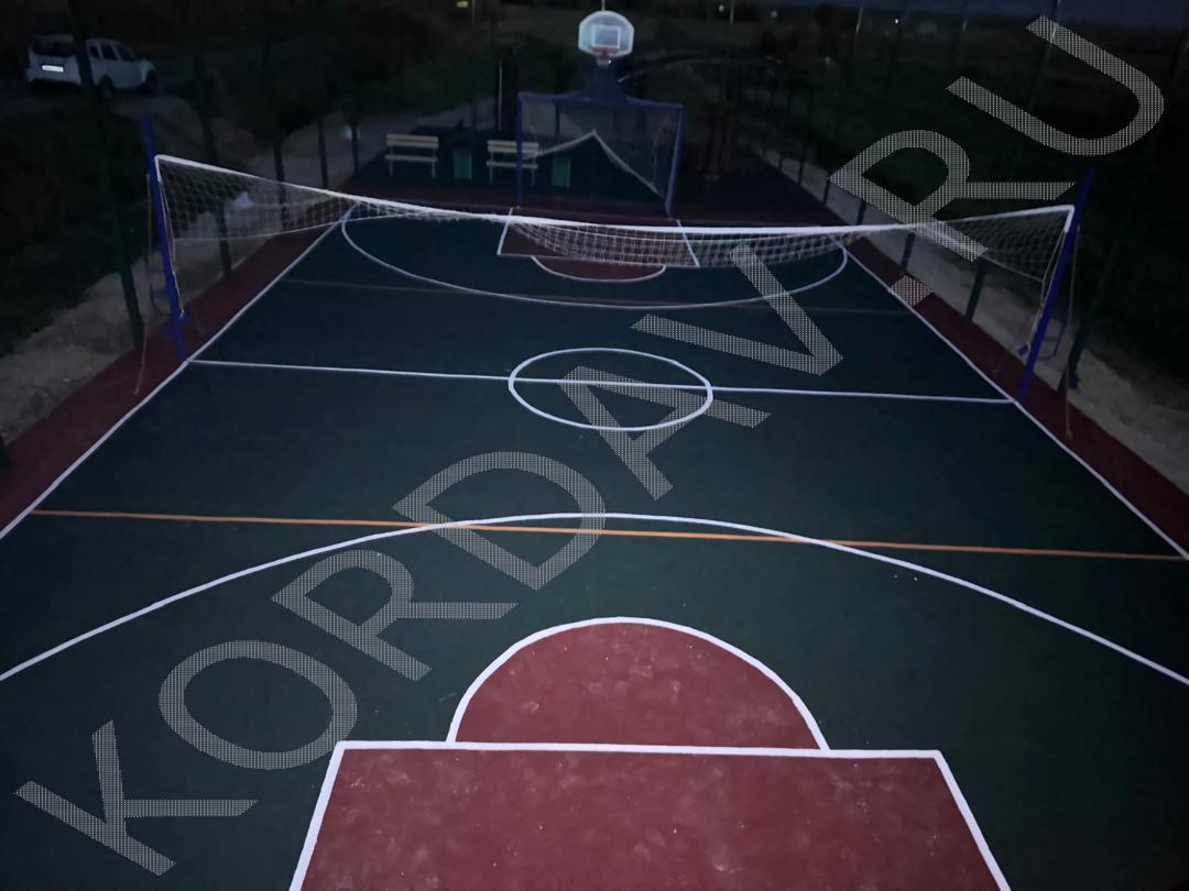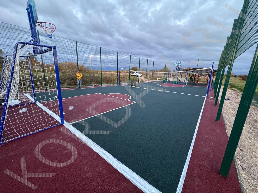 Совмещённые детская и спортивная площадки. Использовано оборудование: